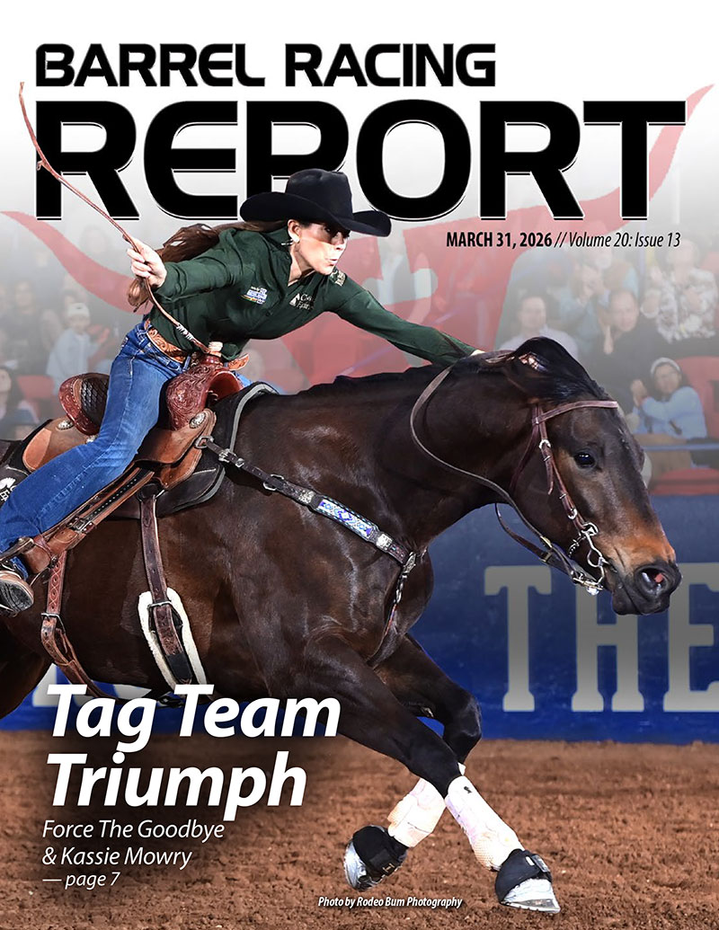 The Barrel Racing Report includes all the major barrel racing results, sales results, standings, breeding notes, upcoming events, and industry information in a short, easy to read newspaper style format.